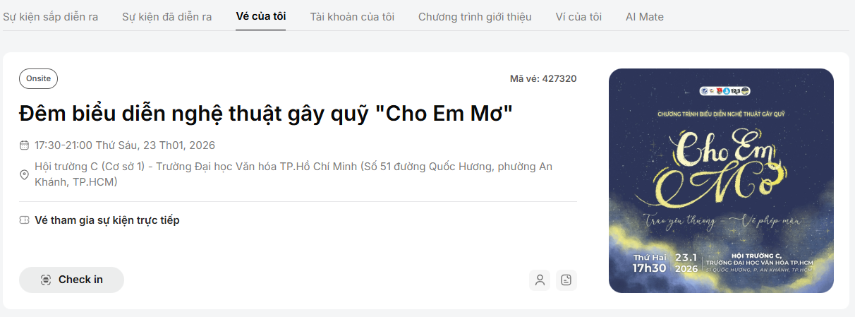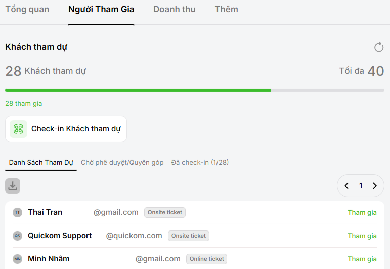 - Quản lý vé và người tham dự tập trung